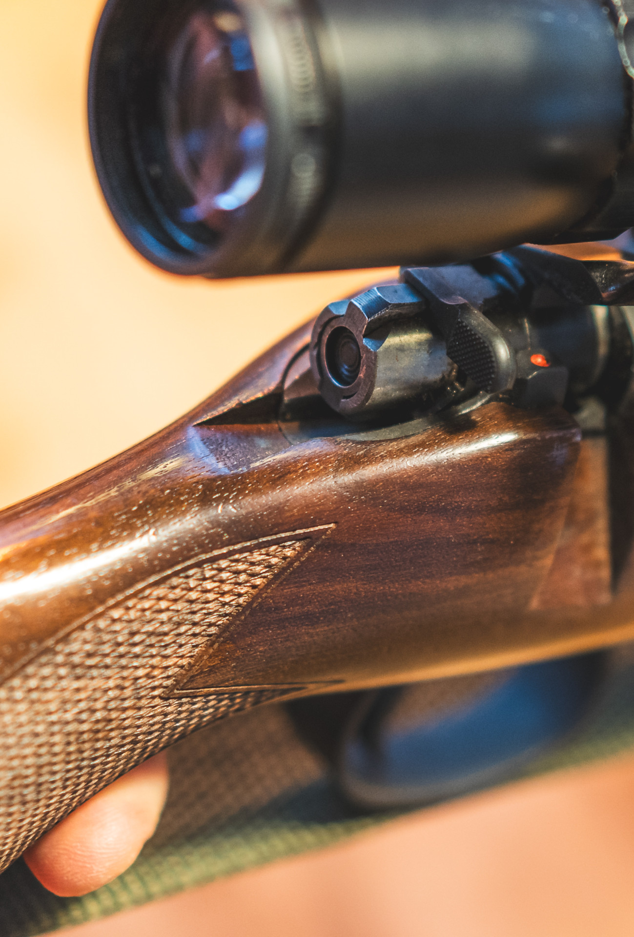 – Om inpassningen är trång på detta ställe kan en duktig bössmakare vidga den lite för att förhindra detta. Utgångspunkten är att lådan borde föra största delen av trycket via rekylklacken mot stocken framför avtryckarbågen, inte från lådans bakre del till kolvhalsens ovandel, säger Matias.